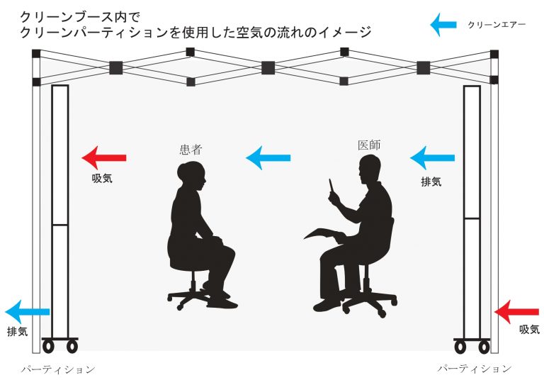 エアーパーテーションを利用して空気の流れつ作ることで